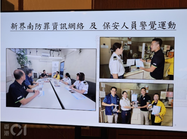 新界南總區防止罪案辦公室主任總督察陳詠君稱,辦公室一直透過「新界南防罪資訊網絡」,與區內物業管理及保安公司保持緊密聯繫,亦在行動期間,到訪屋苑與保安員交流,提升他們的防罪意識。 而新界南各警區與物業管理與保安代表都設有即時通訊群組,以便警方與各持份者作出即時的情報交流;更鼓勵業界見疑即報。