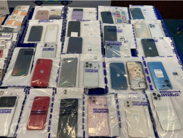 行動中,警方檢獲大量手機。(曹德熙攝)