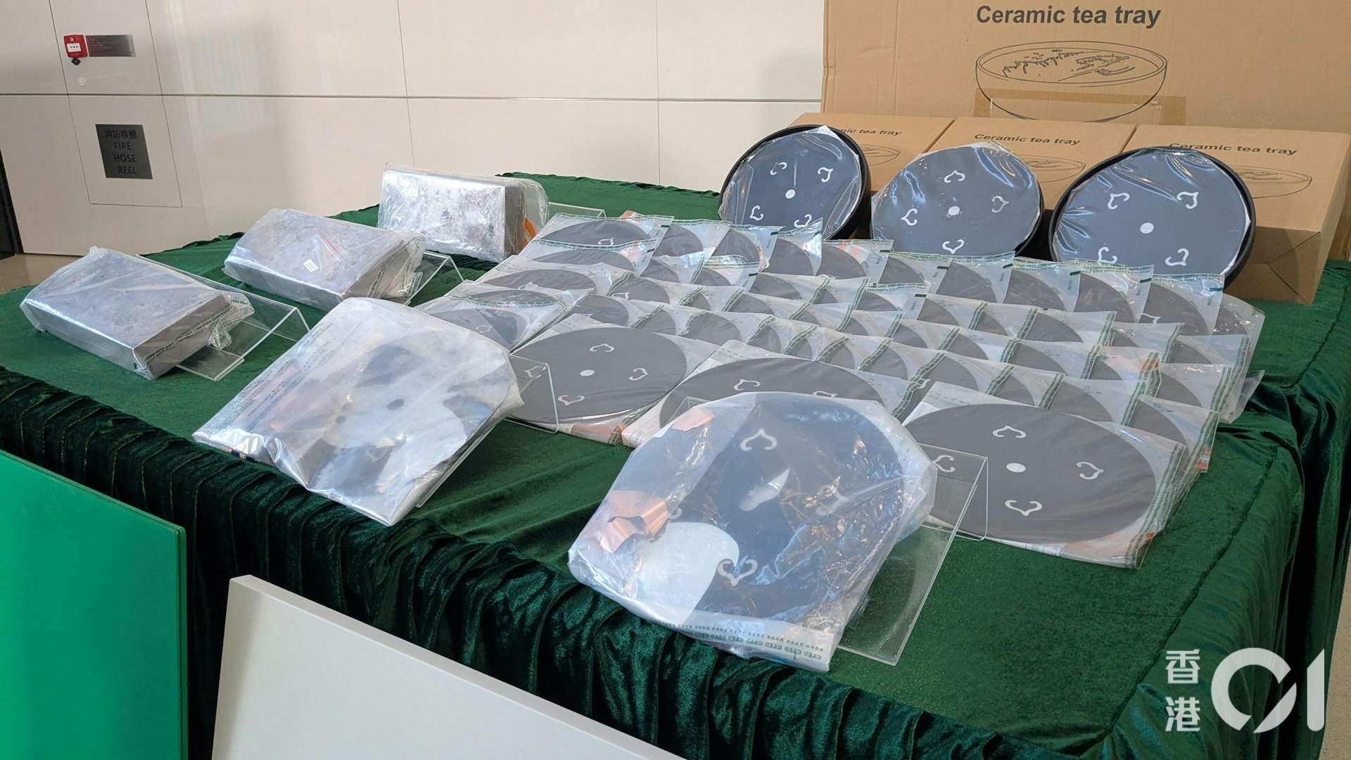 海關於是決定開箱作詳細檢查,發現貨物合共有21個紙箱,每個箱內有6個茶盤,即合共有126個茶盤。茶盤包裝全新,而且有獨立包裝,包裝上亦印有該款茶盤的圖案,卻沒有品牌,海關認為情況並不尋常。