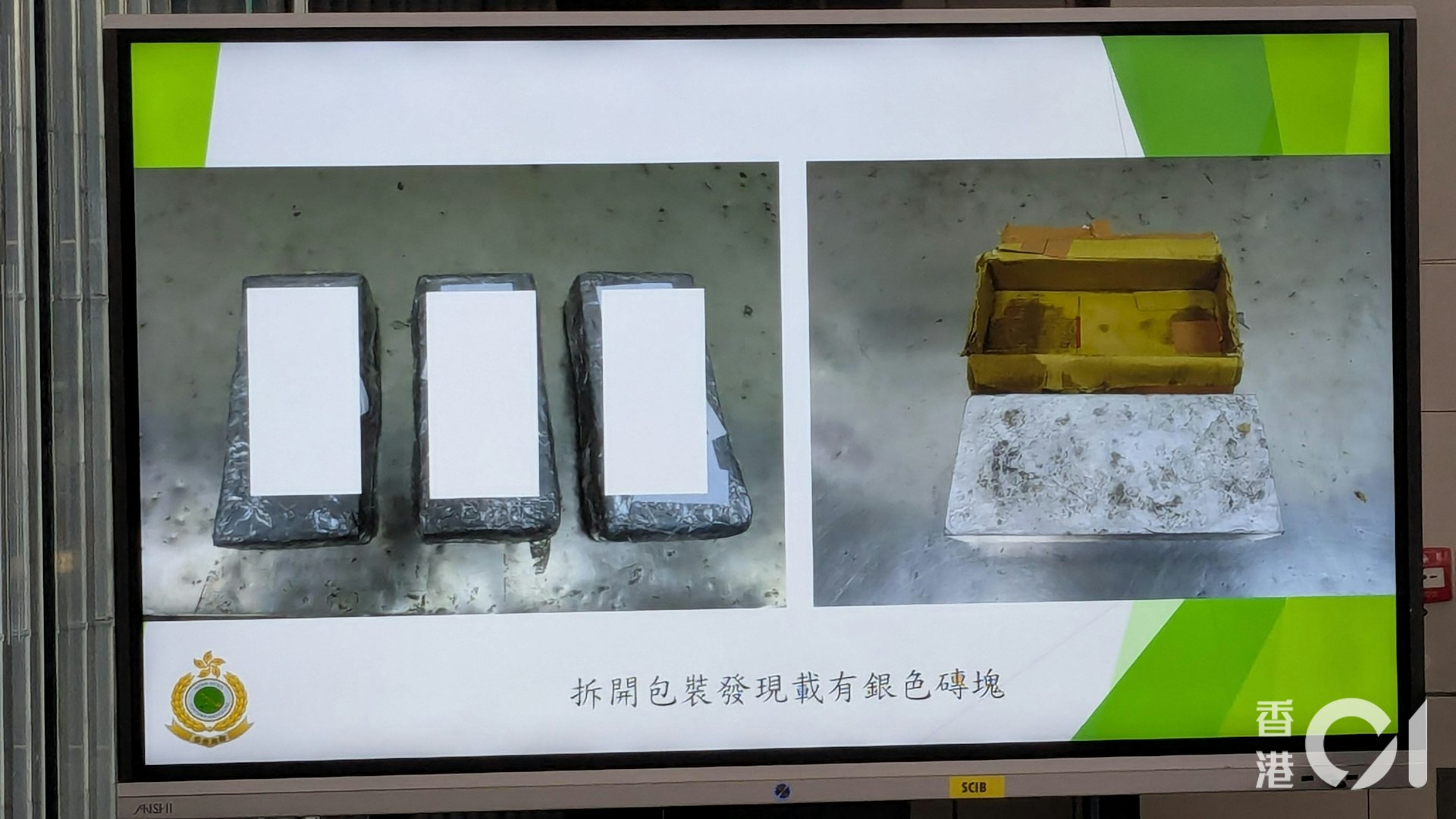 海關人員刮走黑色鉛片表面的陶瓷,發現塗層底下全部都是銀的金屬。(黃偉民攝)